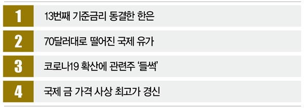 # 지난 22일 한국은행이 기준금리를 동결하면서 금리인하 가능성을 내비쳤지만 국내 증시는 요지부동이었다. 23일엔 코스피지수와 코스닥지수 모두 하락세를 기록했다. 한주간의 주식·채권·스몰캡 등의 동향을 살폈다.