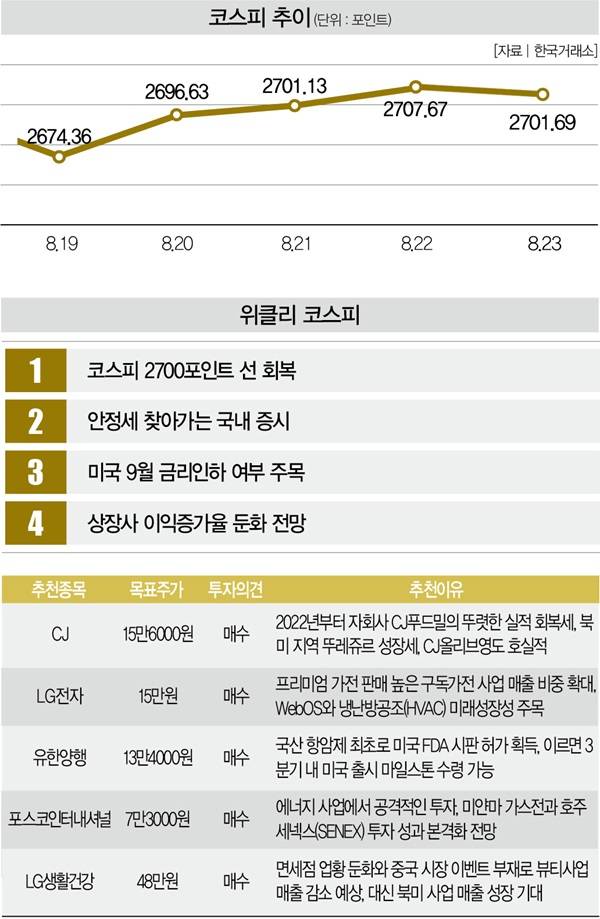 # 국내 증시가 답답한 흐름을 이어가고 있다. 코스피지수는 2700포인트대 회복하는 데 성공했지만 이렇다 할 상승세를 보여주진 못하고 있다. 코스닥지수도 770포인트 선에 갇혔다. 9월로 예정된 미 연방준비제도(연준·Fed)의 기준금리 결정을 앞두고 시장이 소강상태에 빠졌기 때문이다.