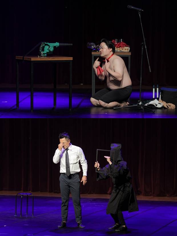 우선 착석부터 시선을 뺏는 커다란 태블릿이 그렇다. 관객의 웃음을 판단하기 위해 설치됐으나 관객의 얼굴을 비추는 카메라 화면이 계속 켜져 있는 탓에 정작 본 공연에 집중하지 못하게 만드는 것. 심지어 큰 태블릿의 무게를 이기지 못한 거치대는 공연이 진행되는 중간에도 여러 차례 큰 소리를 내며 떨어지는 모습을 보이기도 했다.