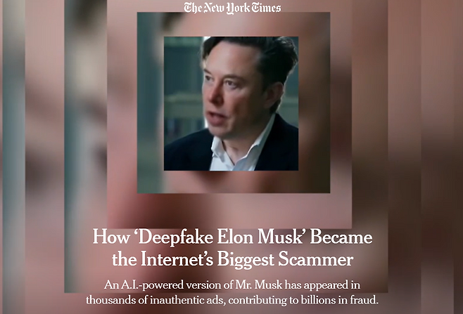 지난 14일자 뉴욕타임스 기사- '딥페이크 일론 머스크가 어떻게 인터넷 최대 사기꾼이 되었나?' --> https://www.nytimes.com/interactive/2024/08/14/technology/elon-musk-ai-deepfake-scam.html