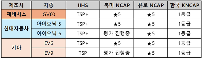 현대차그룹 E-GMP 전기차, 美·유럽 주요 충돌안전평가서 '최고등급'