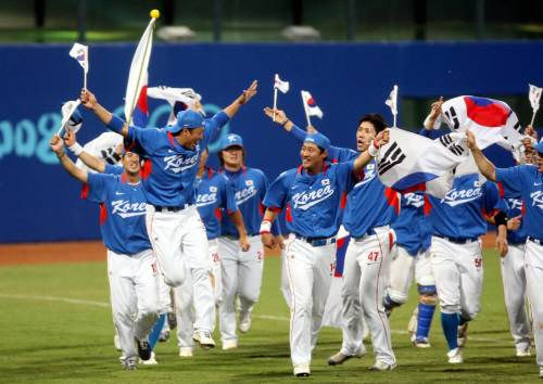 <사진> 2008년 베이징올림픽에서 전승 우승 신화를 쓴 한국야구 대표팀.
