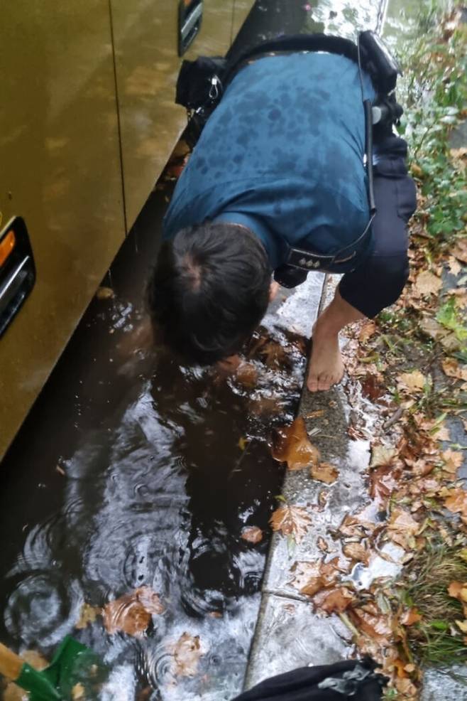 [포착] 폭우에 잠긴 도로 본 경찰관, 배수로 향해 손을 '쑥' 넣더니