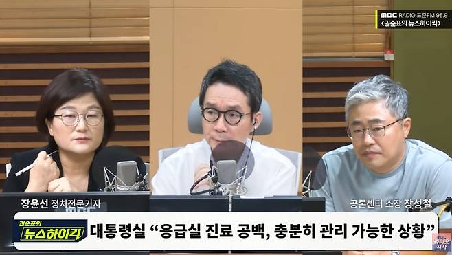 ◎ 장윤선 > 저는 참 언론도 문제인데요. 그냥 수술 이송 재활 다 하는 로 로봇 이러면서 의료 대란 걱정 덜었다, 이런 보도가 나오면서 별로 문제가 아니야라는 방식으로 보도할 것이 아니라 진짜 지금 국민들의 상황이 어떤 지를 촘촘하게 르포 기사를 쓰면서 정확한 상황을 대통령실이 인지할 수 있도록 도와주는 게 이 문제를 타개하는 핵심 지름길이 아닌가라는 생각이 듭니다.