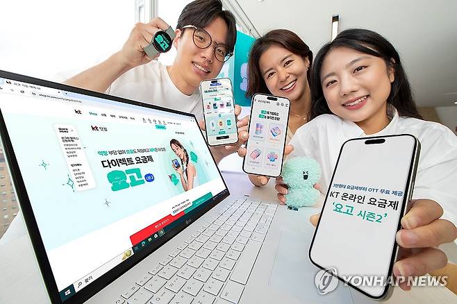 (서울=연합뉴스) KT가 온라인 무약정 요금제 '요고 시즌2'를 새롭게 선보였다고 27일 밝혔다. KT 모델들이 '요고 시즌2'를 소개하고 있다. 2024.8.27 [KT 제공. 재판매 및 DB 금지]