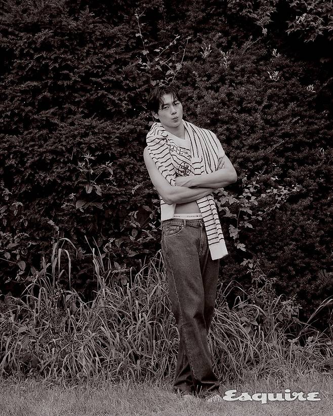 특히 오상욱은 베이직한 릴렉스 핏 후드 티셔츠와 브리프를 입은 건강미가 돋보이는 스타일링으로 에스콰이어 디지털 커버를 장식했다.