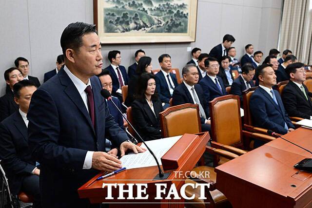 [더팩트ㅣ국회=남윤호 기자] 27일 오후 서울 여의도 국회에서 열린 운영위원회 전체회의에서 신원식 국가안보실장이 윤건영 더불어민주당 의원의 질의에 답변하고 있다.