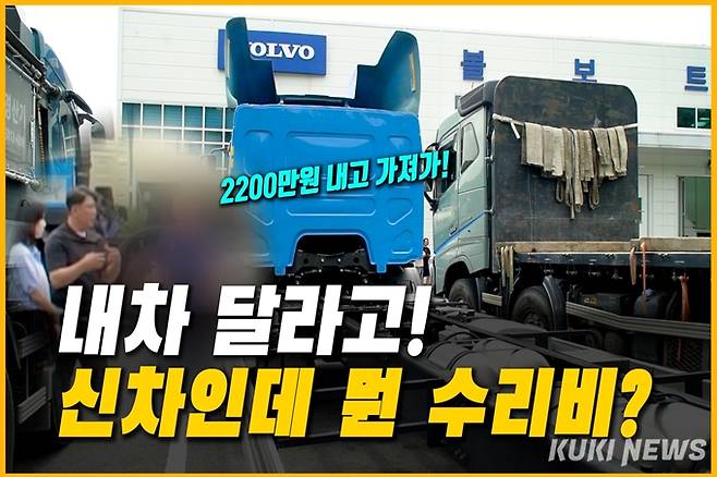 볼보 트럭 차주/아직 제가 운행도 한 번도 못 하고 지금 계기판 킬로수 500km 안 뛰었어요. 그 차를 저한테 1900만원 부가세 포함해서 2200만원 지불하고 가라고 하는데 제 입장에서는 납득이 안 가는 거죠. 제가 볼보에서 신차를 구매하고 특장 업체에다가 윙 제작을 맡기고 제작이 완료돼 출고하러 갔는데 차가 갑자기 시동이 안 걸리는 거예요. 그래서 특장 업체에서 그 배터리 점프 충전하는 과정에서 스파크가 한번 튀었어요. 그러고 난 뒤에도 시동이 계속 제차 걸리지 않아서 천안 사업소로 견인해서 거기서 수리를 진행하는 과정에서 원인을 못 찾은 거죠. 정확히 한 달 정도 소요됐어요. 원인을 밝히는데. 그 과정에서 수리비가 한 1900만원이 나온 거예요. 거기에서 이제 세부 내역을 보니까 제네레이터 발전기를 10개를 교환을 하고 그다음에 저는 당연히 신차기 때문에 보증 수리가 되는 줄 알았는데 들어가서 이틀 만에 보증 수리가 안 되고 유상 수리가 된다고 얘기를 했고 이제 저는 특장 업체에 과실이 있으면 특장 업체에서 수리비를 전액 부담하기 때문에 전혀 신경을 안 썼어요. 근데 특장 업체의 잘못이라는 걸 볼보 측에 요구했는데 주지도 않고…. 그리고 명확한 원인에 대해서 답도 내주지도 못하는 상황에서 수리비만 계속 청구하고 차를 천안 사업소에서 잠가버리고 반출을 안 해주는 거죠.