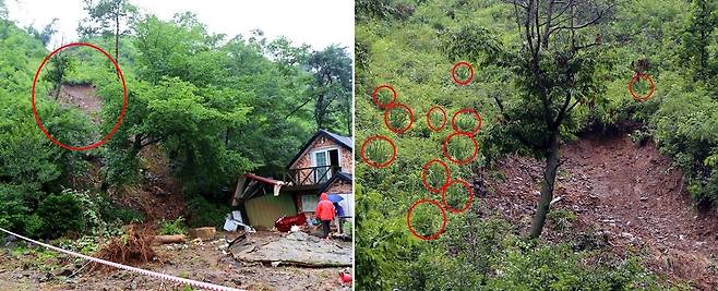 산사태 현장에 남겨진 증거
