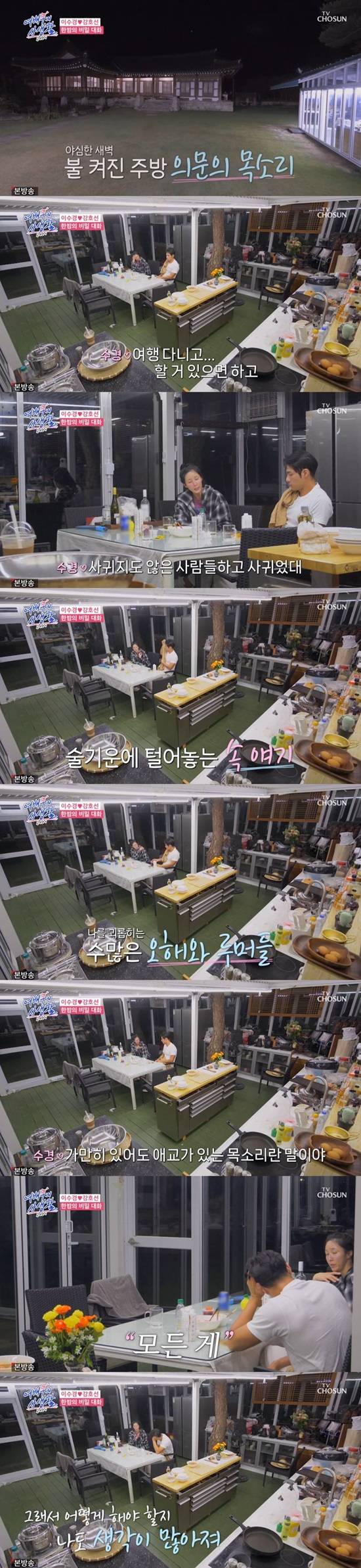 강호선은 "요즘에 뭐 하고 지내냐"라고 물었다. 이수경은 "얼마 전에 드라마 끝나고 친구들하고 술 마시고 여행 다니고 할 거 있으면 하고"라고 답했다.