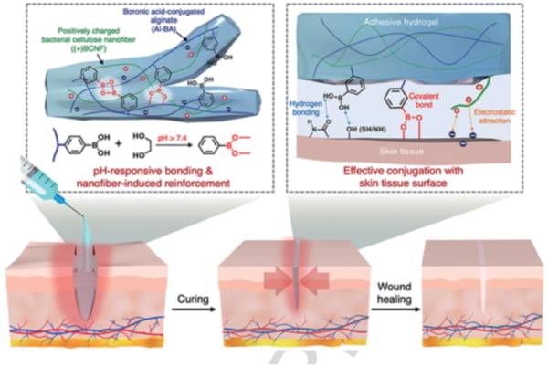 피부의 밀착력을 강하게 개선한다. 손상된 피부장벽 회복과 보습 효과, 각질 개선 효과의 뛰어난 효능을 보인다. 특히 피부의 pH 5.5~5.8 사이에서 최고의 효과를 발휘한다. 이 기술을 통해 개발된 하이드로겔은 다양한 크기와 깊이의 상처 치료에 적용될 수 있다. 특히 부드러우면서도 상처 부위에 잘 붙어 있어 움직임이 큰 상처 부위에도 접착력이 유지되는 성과를 얻어 냈다.