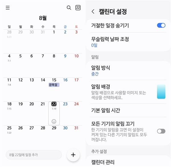 | ▲ 삼성 캘린더 앱. 중동판이다 보니 무슬림 관련 설정이 담겨져 있다. |