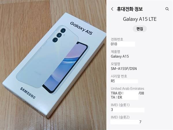 | ▲ 갤럭시 A15 중동판. 국내 판매 버전과 다르게 듀얼 유심을 지원한다. |