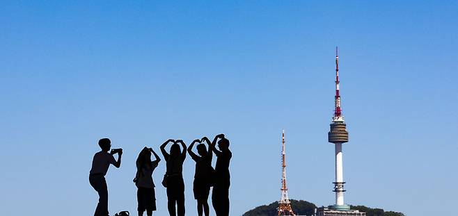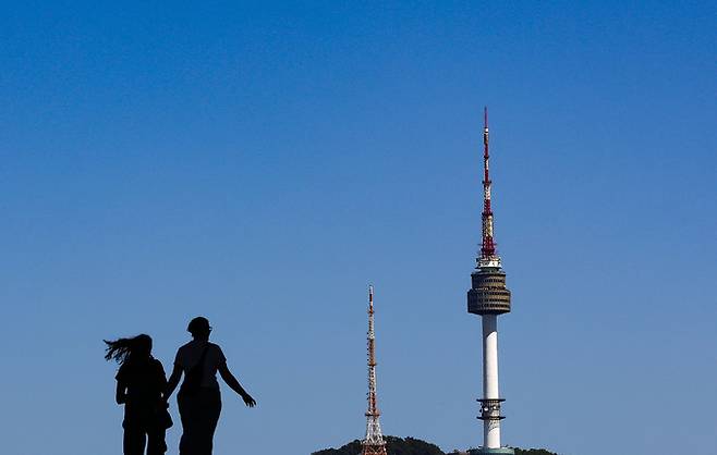 아침 기온이 낮아져 비교적 선선한 날씨를 보인 28일 서울 용산구 국립중앙박물관 뒤로 푸른 하늘이 펼쳐져 있다.