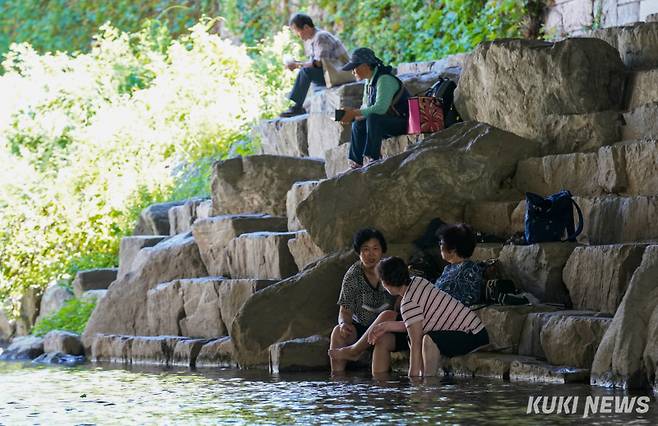 처서 지나도 무더위…청계천에 발 담근 시민들 [쿠키포토]