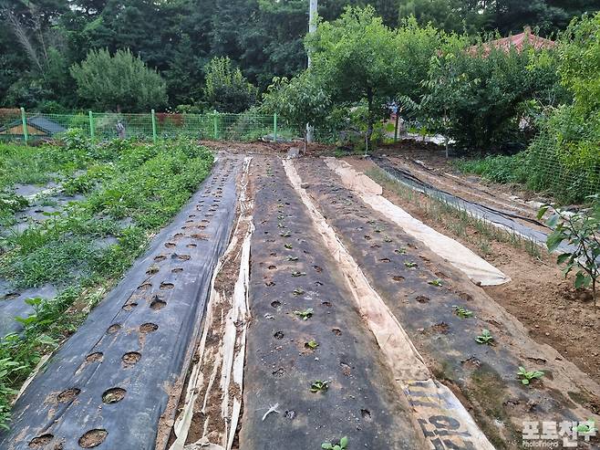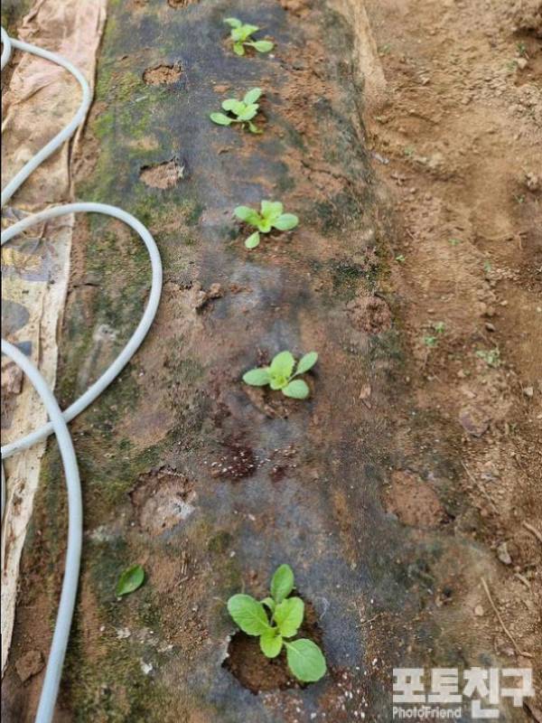 첫 번째 사진은 풀을 뽑고 배추 모를 사서 심은 사진이다.