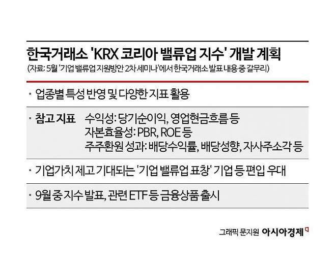 한국거래소가 코리아 디스카운트(한국 증시 저평가) 해소를 위한 마중물이 될 'KRX 코리아 밸류업 지수(밸류업 지수)' 개발을 마쳤다. 9월 한 달간의 연계 테스트가 차질 없이 진행될 경우 이르면 11월 말에는 관련 국내 상장지수펀드(ETF)들도 만나볼 수 있게 된다.