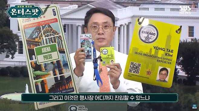 민주당 전당대회 취재할 때 필요한 게 비표입니다. 두 개나 되죠. 이건 SBS 기자임을 증명하는 노란 딱지, 그리고 이건 행사장 어디까지 진입할 수 있느냐는 비표인데, 이것만 있다고 무조건 다 들어갈 수 있는 게 아니었습니다. 사람들이 워낙 많다 보니까 문을 수시로 차단했고요. 민주당 대의원 당원 유권자들을 만나려면 이 비표를 내고 특수 비표를 따로 받아야 합니다. 그런데 그 비표는 시간 제한이 있어요. 그 비표를 받아 들고 30분 동안 부지런히 취재한 다음에 반납해야지 제가 다음 날에도 취재할 수 있는 거죠.