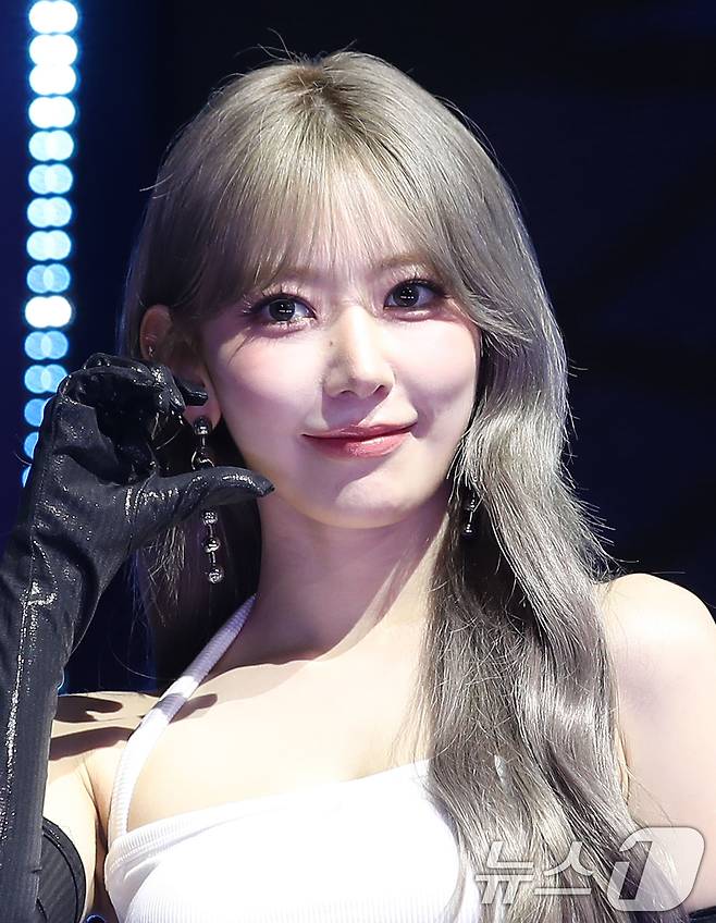 (서울=뉴스1) 권현진 기자 = 르세라핌(LE SSERAFIM)의 사쿠라가 29일 서울 광진구 예스24라이브홀에서 가진 미니 4집 ‘크레이지(CRAZY)’발매 기념 쇼케이스에서 포즈를 취하고 있다. 2024.8.29/뉴스1