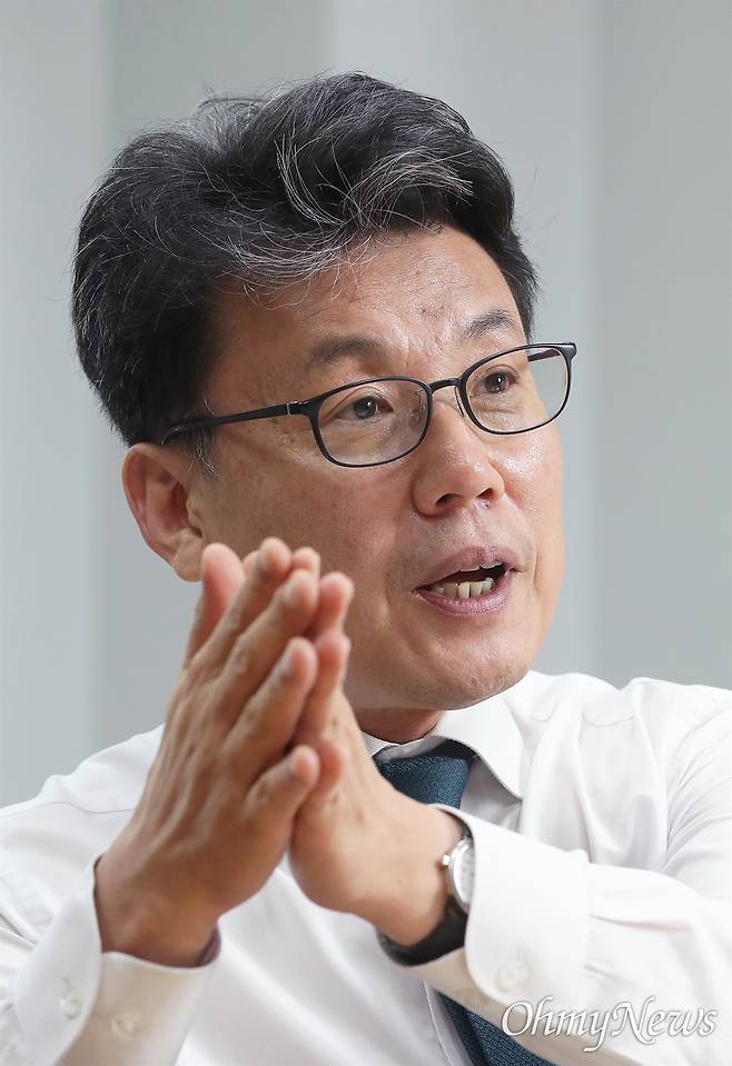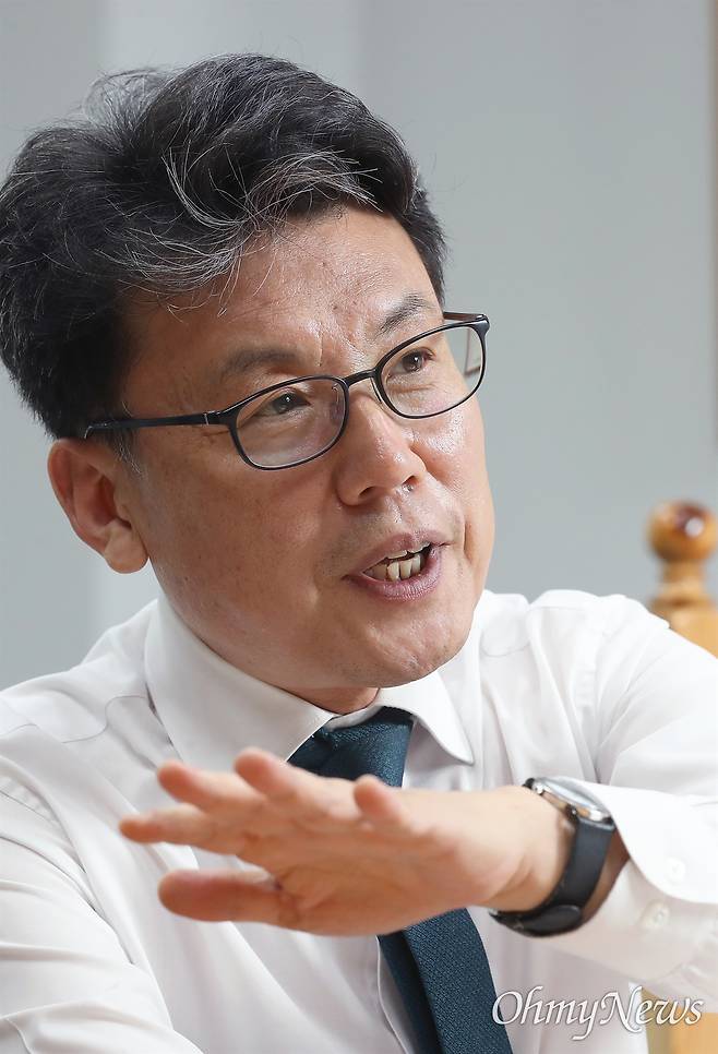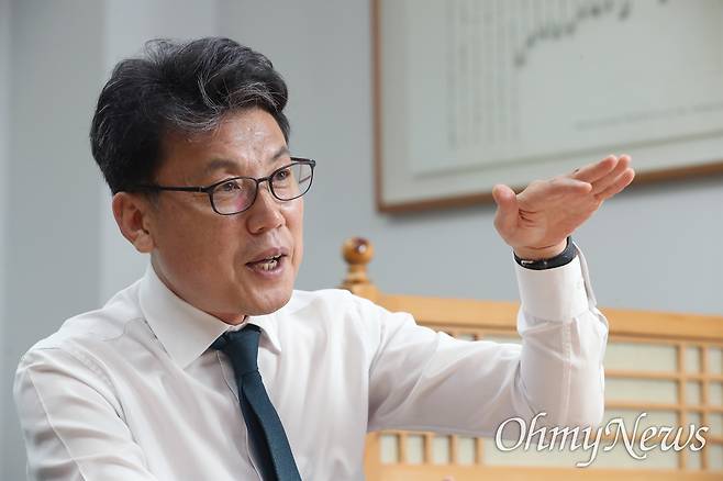 | ▲ 진성준 더불어민주당 정책위의장이 26일 서울 여의도 국회 의원회관에서 <오마이뉴스>와 인터뷰 하고 있다. |