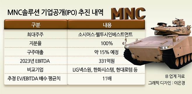 방위산업용 부품 사업에 특화된 MNC솔루션은 기계장비에 대한 감가상각비 같은 비현금성 비용 지출이 적지 않다. 따라서 IPO 밸류에이션에 EV/EBITDA 지표가 활용될 개연성이 높다. MNC솔루션의 지난해 연결 상각전영업이익(EBITDA)는 331억원 정도다.