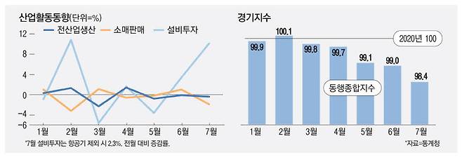 정부는 7월 산업생산 감소가 일시적이라며 낙관론을 펴고 있다. 수출이 늘고 있고 제조업 기업 실적이 호조를 띤다는 점에서다.
