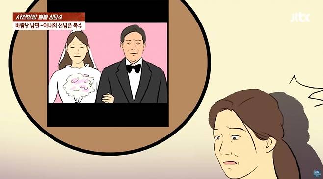 이후 복수를 마음먹은 B씨는 돌싱 댄스 동아리에 들어가 싱글인 척하며 맞바람을 피웠다. 그러던 중 B씨가 폭발하게 된 계기는 남편 옷 주머니에서 발견한 사진이었다. 남편이 20대 내연녀와 웨딩 콘셉트의 사진까지 찍었던 것.