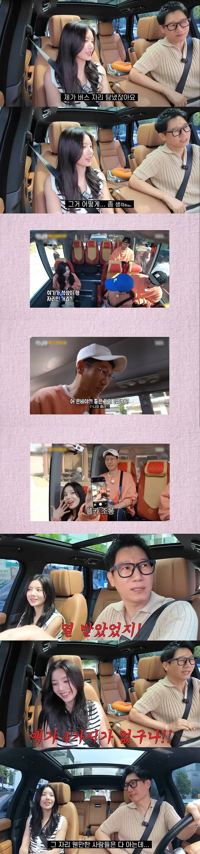 이날 권은비는 오랜만에 만난 지석진을 향해 "예전에 '런닝맨' 촬영 때 제가 선생님 자리 탐내지 않았냐. 그거 어떻게 생각했냐"고 물었다.