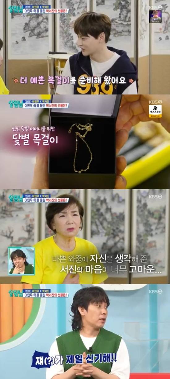 가수 박서진이 신입닻별 이민우 어머니에게 목걸이를 깜짝 선물했다.