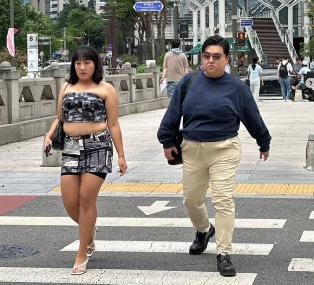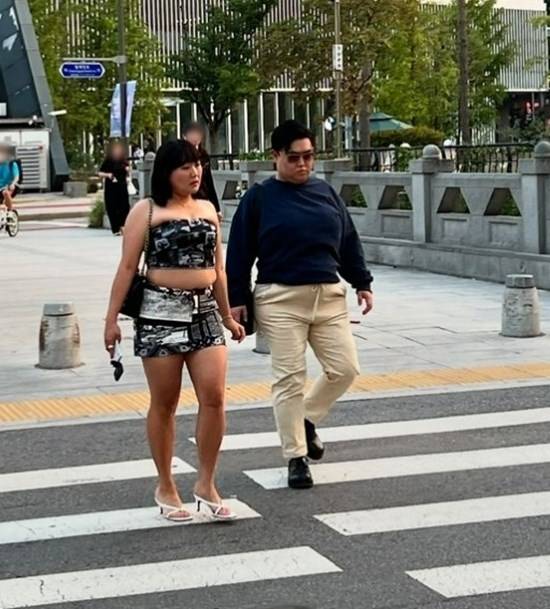 이수지는 오프숄더 크롭탑에 미니스커트를 입고 화이트 컬러의 하이힐을 신은 채 새침한 표정을 지으며 청계천 횡단보도를 걷고 있다. 또 이수지 옆에는 김규원이 네이비 컬러의 맨투맨에 베이지 팬츠, 검은색 구두, 틴트 선글라스를 착용한 모습이다.