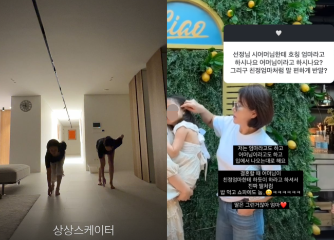 이런 상황에서 최선정이 선우은숙과 함께 주말을 보내는 근황을 전한 것. 그는 31일에도 "선정님 시어머님한테 호칭 엄마라고 하시나요 어머님이라고 하시나요? 그리구 친정엄마처럼 말 편하게 반말?"이라는 질문에 "저는 엄마라고도 하고 어머님이라고도 하고 입에서 나오는대로 해요. 결혼할 때 어머님이 친정엄마한테 하듯이 하라고 하셔서 진짜 딸처럼 밥먹고 쇼파에도 눕.. 딸은 그런거잖아 엄마"라며 손녀와 함께 시간을 보내는 시어머니의 사진을 올려 근황을 전했다.
