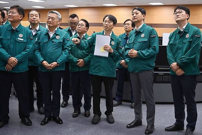 [서울=뉴시스] 조수정 기자 = 안덕근 산업통상자원부 장관이 지난달 31일 경기 의왕시 전력거래소 경인전력관제센터에서 9월 늦더위 대비 전력수급 관리현황 점검회의를 주재한 뒤 상황실을 둘러보고 있다. (사진=산업통상자원부 제공) 2024.09.01. photo@newsis.com *재판매 및 DB 금지