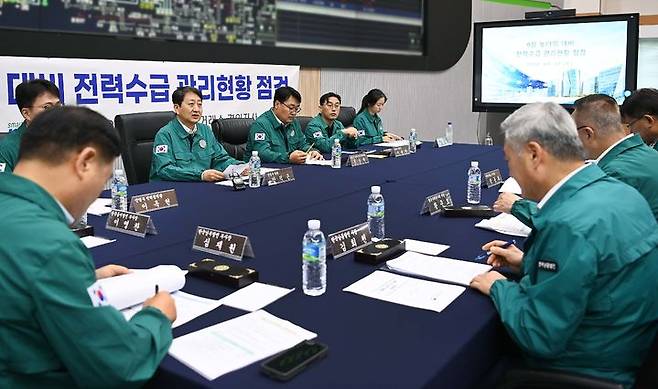 [서울=뉴시스] 조수정 기자 = 안덕근 산업통상자원부 장관이 지난달 31일 경기 의왕시 전력거래소 경인전력관제센터에서 9월 늦더위 대비 전력수급 관리현황 점검회의를 주재하고 있다. (사진=산업통상자원부 제공) 2024.09.01. photo@newsis.com *재판매 및 DB 금지
