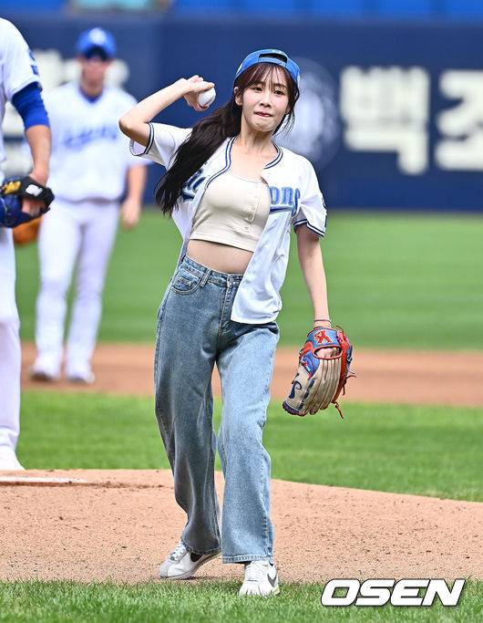 러블리즈 유지애가 삼성 라이온즈 승리 기원 시구를 하고 있다. 2024.09.01 / foto0307@osen.co.kr