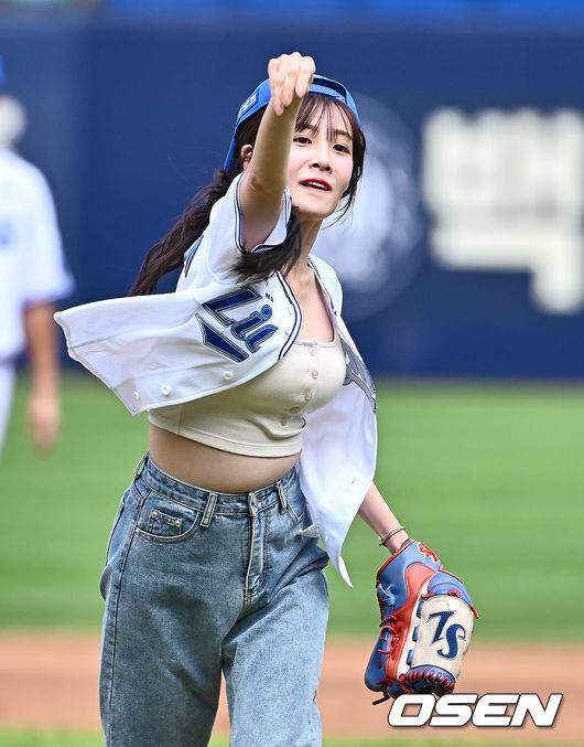 러블리즈 유지애가 삼성 라이온즈 승리 기원 시구를 하고 있다. 2024.09.01 / foto0307@osen.co.kr