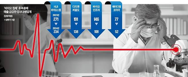 기업이 신약후보물질을 개발하면 동물실험(전임상)과 환자 대상 안전성 및 유효성 검증(임상)을 하는데, 이를 대행해주는 곳이 CRO다. 한 CRO 관계자는 “임상 1상을 통과한 바이오기업 중 돈이 없어 2상과 3상 비용을 지급하지 못한 업체가 많다”고 했다. 특허법인들도 일부 바이오회사가 신약개발에 따른 특허 출원과 등록 수수료 지급을 중단하자 자체 비용으로 충당하는 사례가 늘고 있다.