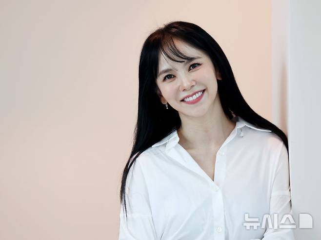 [서울=뉴시스] 김진아 기자 = 뮤지컬 '베르사유의 장미'에서 오스칼 역을 맡은 배우 김지우가 2일 서울 강남구의 한 빌딩에서 열린 라운드 인터뷰에 앞서 포즈를 취하고 있다. 2024.09.02. bluesoda@newsis.com