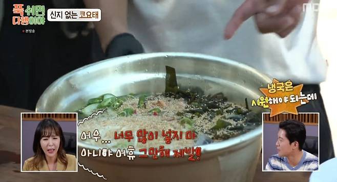 결국 육수를 보완한 김종민은 면과 각종 고명들을 곁들여 냉국수를 완성했다. 결과물을 보며 박준형이 “이거 있는 요리 맞나?”라며 의구심을 보였다면 빽토커들 역시 “너무 걱정된다. 육수가 아니라 그냥 생수 같다”라고 우려했다.