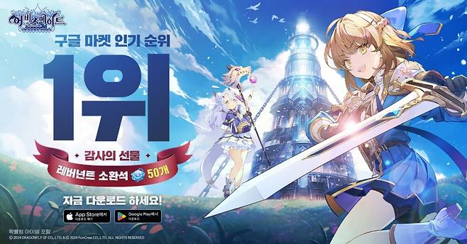 한편, 어비스메이트는 구글플레이 스토어 인기순위 1위 달성을 기념해 이용자 전원에게 레버넌트 소환석 50개를 지급한다.