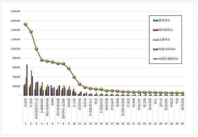 신인 아이돌그룹 브랜드평판 2024년 9월 빅데이터 분석결과, 1위 라이즈 2위 투어스 3위 키스오브라이프 순으로 분석됐다.
