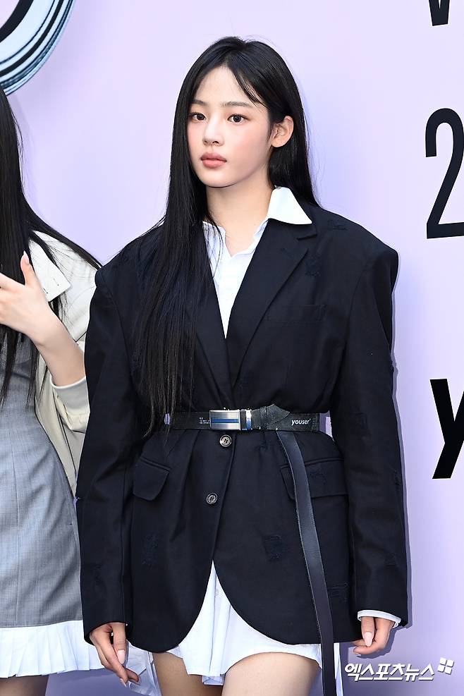 이날 서울패션위크 오프닝 행사에 참석한 그룹 뉴진스 민지가 포토타임을 갖고 있다.