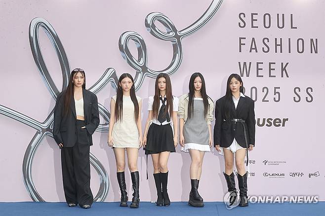 (서울=연합뉴스) 류효림 기자 = 그룹 뉴진스가 3일 서울 동대문디자인플라자(DDP)에서 열린 '서울 패션위크(SEOUL FASHION WEEK) 2025 S/S' YOUSER 컬렉션에 참석해 포즈를 취하고 있다. 2024.9.3