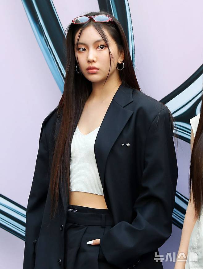 [서울=뉴시스] 김혜진 기자 = 그룹 뉴진스 혜인이 3일 오전 서울 중구 동대문디자인플라자(DDP)에서 열린 2025 S/S 서울패션위크 포토월 행사에서 포즈를 취하고 있다.