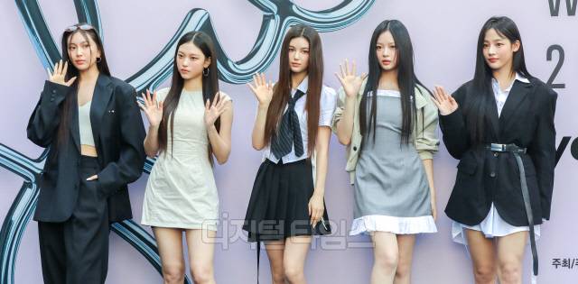 그룹 뉴진스가 3일 서울 동대문디자인플라자(DDP)에서 열린 '서울 패션위크(SEOUL FASHION WEEK) 2025 S/S' YOUSER 컬렉션에 참석해 포즈를 취하고 있다.