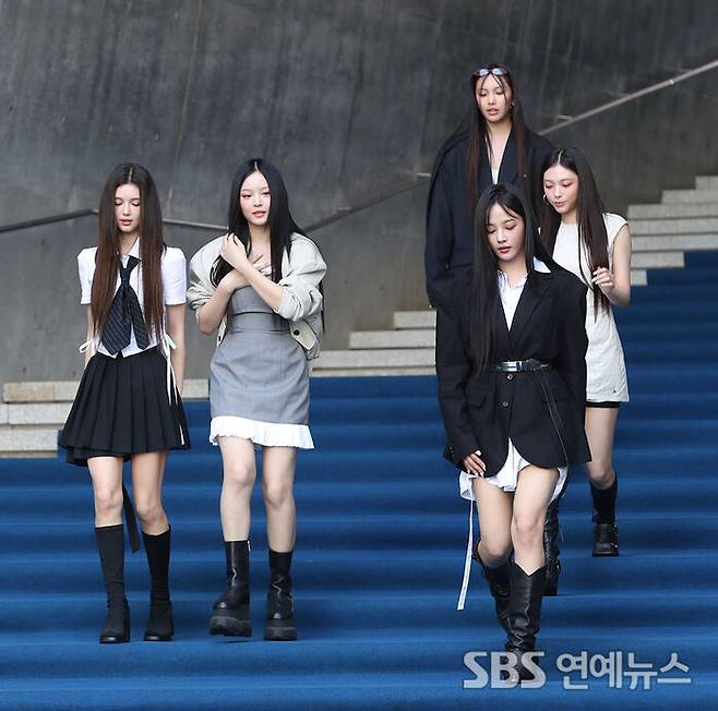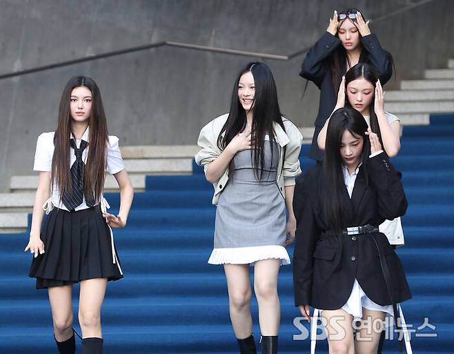 [SBS연예뉴스 | 백승철 기자] 그룹 뉴진스가 3일 오전 서울 중구 동대문디자인플라자(DDP)에서 열린 2025 S/S 서울패션위크에 참석하고 있다.