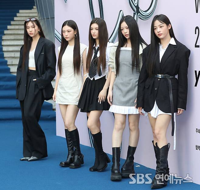 [SBS연예뉴스 | 백승철 기자] 그룹 뉴진스가 3일 오전 서울 중구 동대문디자인플라자(DDP)에서 열린 2025 S/S 서울패션위크에 참석해 포즈를 취하고 있다.