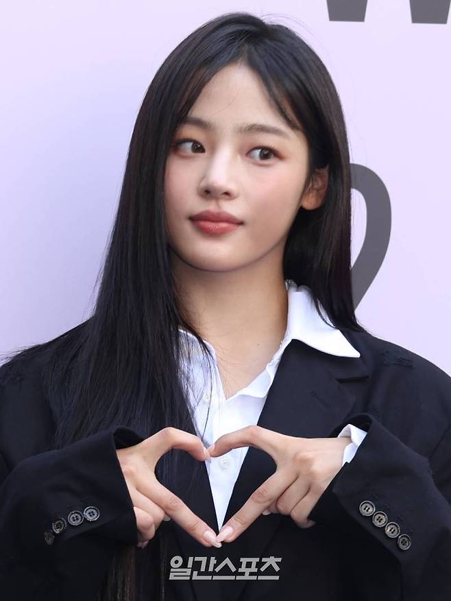 그룹 뉴진스(NewJeans) 민지가 패션 브랜드 유저(youser) 포토월 행사에 참석해 포즈를 취하고 있다.