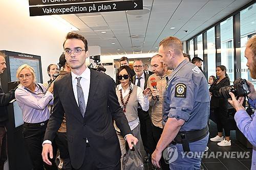 epa11581374 Former managing director for the garbage disposal company Think Pink Bella Nilsson (C), also known as Fariba Vancor, arrives for a hearing at the Attunda District Court in Stockholm, Sweden, 03 September 2024. Think Pink's former CEO is accused along with ten other people of illegally dumping hundreds of thousands of tons of garbage at over 20 locations in the country, in what is called Sweden's largest environmental crime trial. EPA/HENRIK MONTGOMERY SWEDEN OUT