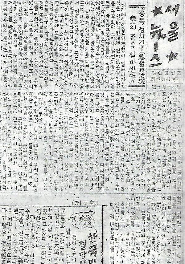 | ▲ 서울뉴스 조선공산당 경성시위원회 기관지 <서울뉴스>, 1946년경. |