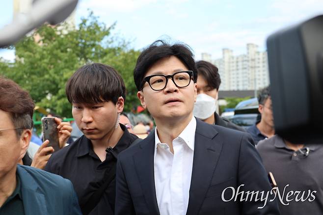 한 대표는 야당이 발의하고 국회에서 통과한 채상병 특검법을 윤석열 대통령이 연이어 거부권(재의요구권)을 행사하자 전당대회 출마 과정에서 대법관이 추천하는 제3자 특검법을 발의하겠다고 공약했었다.